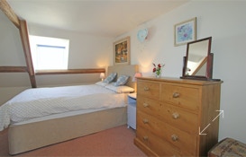 The master bedroom has a king sized bed, room for a truckle bed or cot, and en suite shower. There's also a large family bathroom and a bunkroom with two bunks. There's a double bedroom on the top floor with glimpses of the sea. There is also a room with three single beds, which may be hired in lieu of the double bedroom. (Only one room on the top floor may be used at a time due to fire regulations).