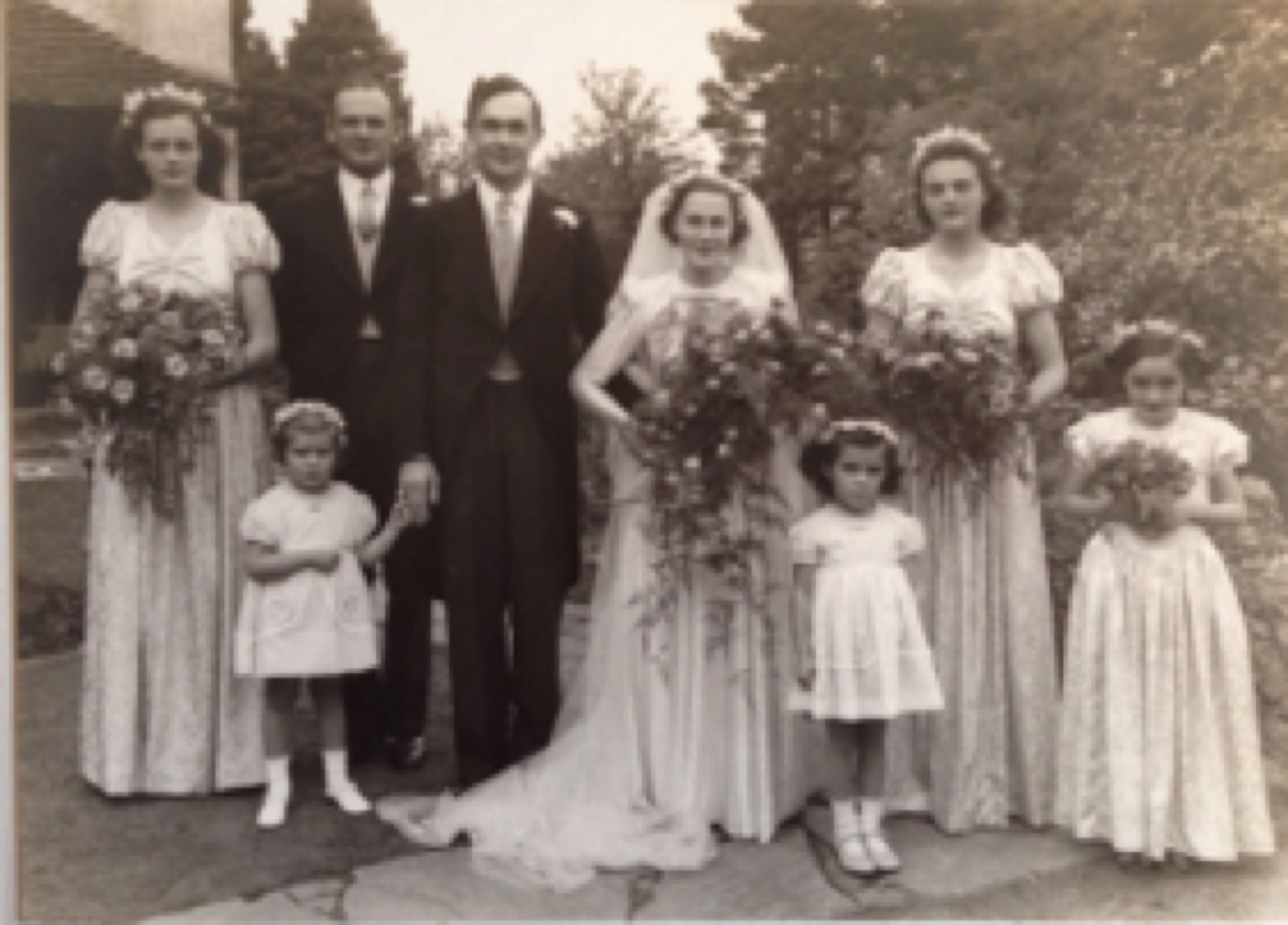 JCB and EMB, with best man John Gaskain and EMB's cousins Pam and Peggy Heath.